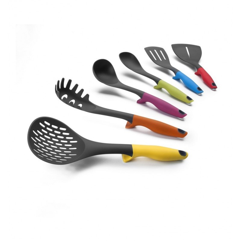 Set 6 UtensiliosSoporte Colorful de Ibili. Evita el contacto del alimento con las diferentes superficies de la cocina mejorando en limpieza e higiene.